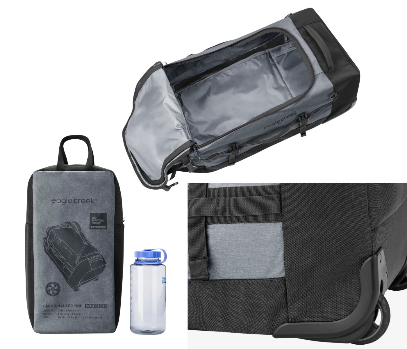 – Three carry options: Side Carry, Top Duffel Handle, and Backpack with zip-away straps