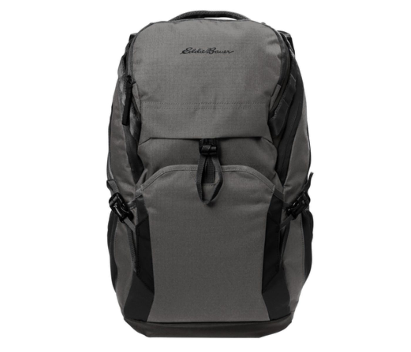 - Contrast Eddie Bauer logo on front pocket and back shoulder strap