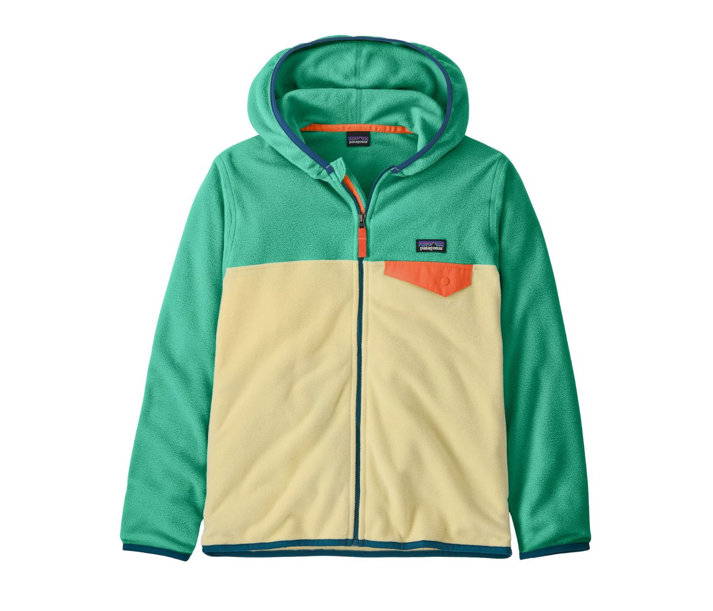 Body fabric is made from warm, quick-drying 100% recycled polyester microfleece with color blocking
