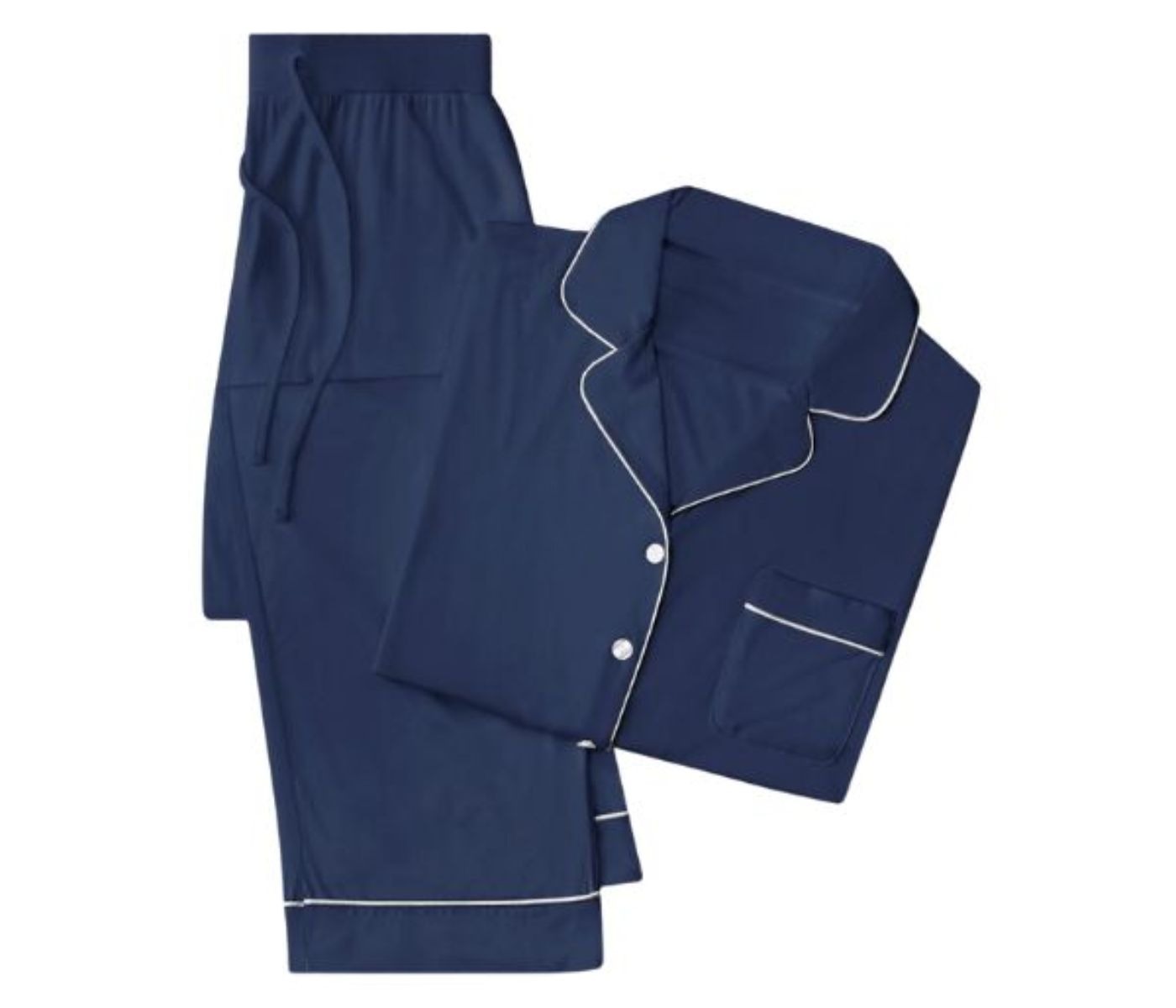 “AN OPRAH’S FAVORITE THING WINNER”: Bedtime can’t come soon enough when you’re waiting to slip into our Long Sleeve Pajama Set. Crafted with a soft stretch-knit that features enhanced breathability and luxurious drape– this lightweight set sleeps degrees cooler than cotton to keep your temperature just right through the night. With elegant contrast piping throughout, the set includes a pocketed button-up and pants with an elastic waistband.